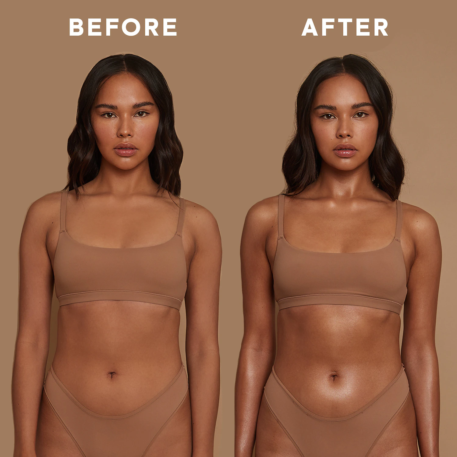When our golden shimmer drops are added to the spray solution, it produces a beautiful glowing effect. These drops add a hint of color and “shimmer” to your sunless spray tan. The shimmer drops wash off when it's time to rinse off your spray tan.